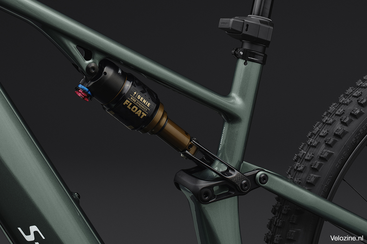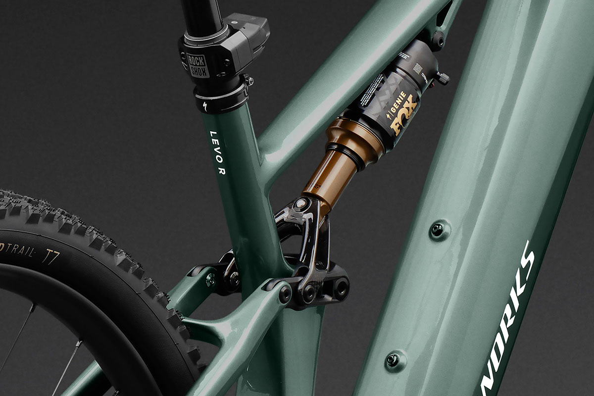Net als bij de Levo SL en de Levo 4 is bij de Levo R eveneens een sleutelrol weggelegd voor de Genie-demper. Dankzij twee luchtkamers en een zogenaamde ‘Genie-band’ varieert het volume van deze demper gedurende de ingaande slag automatisch. Hierdoor beschikt de Genie-demper feitelijk over twee verschillende veercurves: soepel op het eerste twee derde deel, sterk progressief in het laatste derde deel. Bij de Levo 4, maar zeker ook bij Specialized Stumpjumper (test hier) waren onze testrijders zeer enthousiast over dit concept.