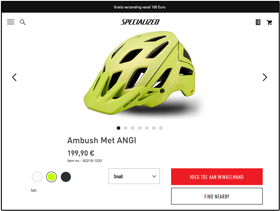 - Vanaf nú heeft de Specialized website een zoekfunctie die je precies toont bij welke dealer een bepaald artikel op voorraad is. Dus wil je een artikel bekijken, passen en proeven vóór je iets koopt, dan is dit een super handige functie. Top.