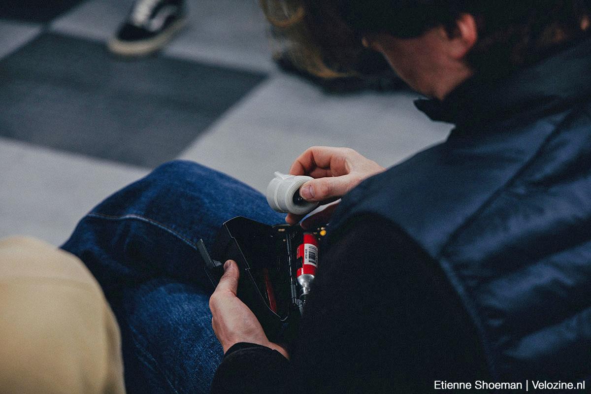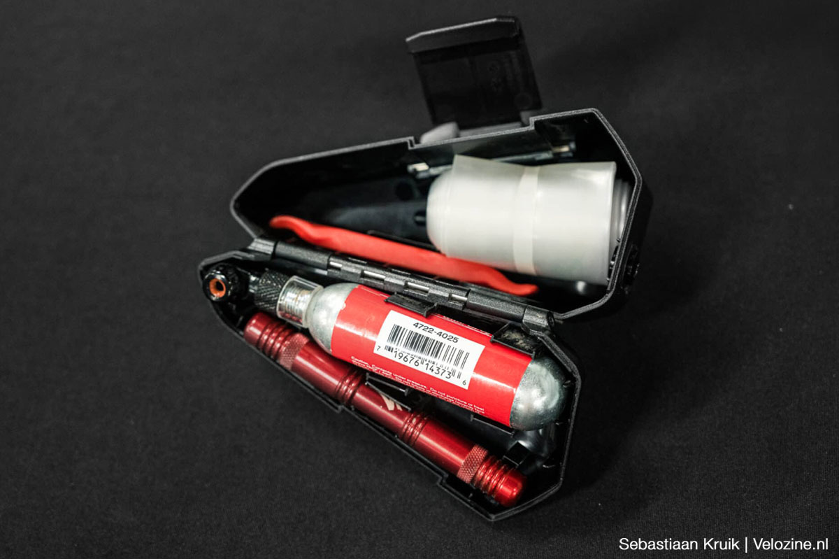 Een forse besparing, waarvan een belangrijk deel is gerealiseerd omdat er bij de Epic 9 geen opbergvak meer in de onderbuis zit. Vanwege de extra versterkingen die nodig zijn, is een onderbuis zónder opening lichter dan een onderbuis mét opening. Als alternatief valt Specialized terug op een externe Swat-box, een kunststof doosje dat je op de onderbuis kunt schroeven. Voordeel volgens Specialized: de inhoud is makkelijker en sneller bereikbaar. De ‘kofferbak’ is overigens niet het enige dat verdwenen is. Ook de kabeldoorvoeropeningen in de balhoofdbuis zijn weg. De kabels en leidingen lopen nu op alle Epics door het bovenste balhoofdlager, want lichter.
