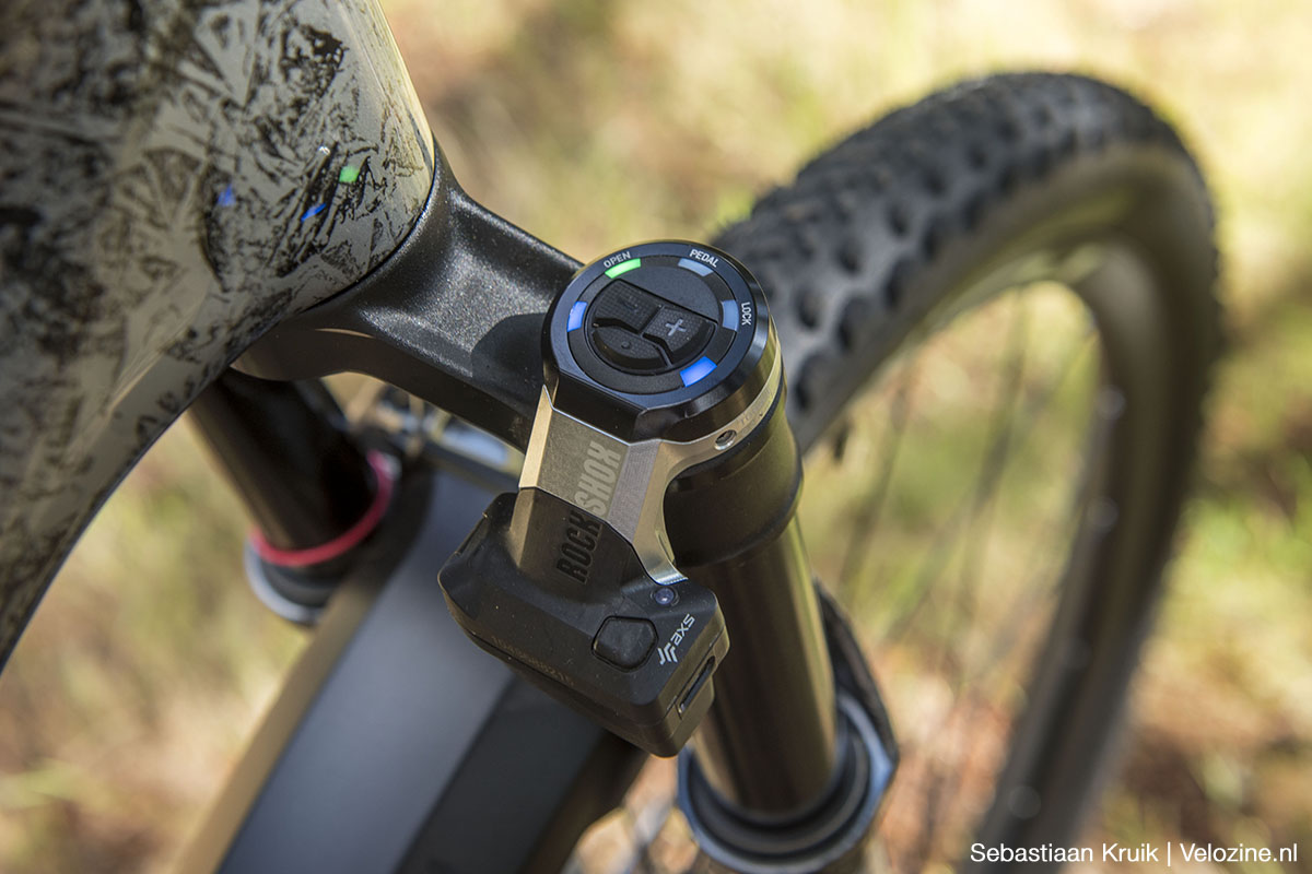 De S-Works- en Pro-uitvoeringen van de Epic 9 zijn uitgerust met Rockshox’ Flight Attendant. Als je precies wilt weten hoe dit elektronische systeem werkt moet je het artikel dat collega Jeroen erover schreef even lezen. De (zeer) beknopte versie komt erop neer dat Flight Attendant de hierboven genoemde demperinstellingen wide open, magic middle en sprint-on-lock automatisch kiest met behulp van een lerend algoritme, dat gebruik maakt van meetgegevens van een hele trits sensoren. Die gegevens worden razendsnel verwerkt: tussen een meting en het sluiten van de compressiedemping zit slechts vijf milliseconden. Oftewel 5 duizendste van een seconde!