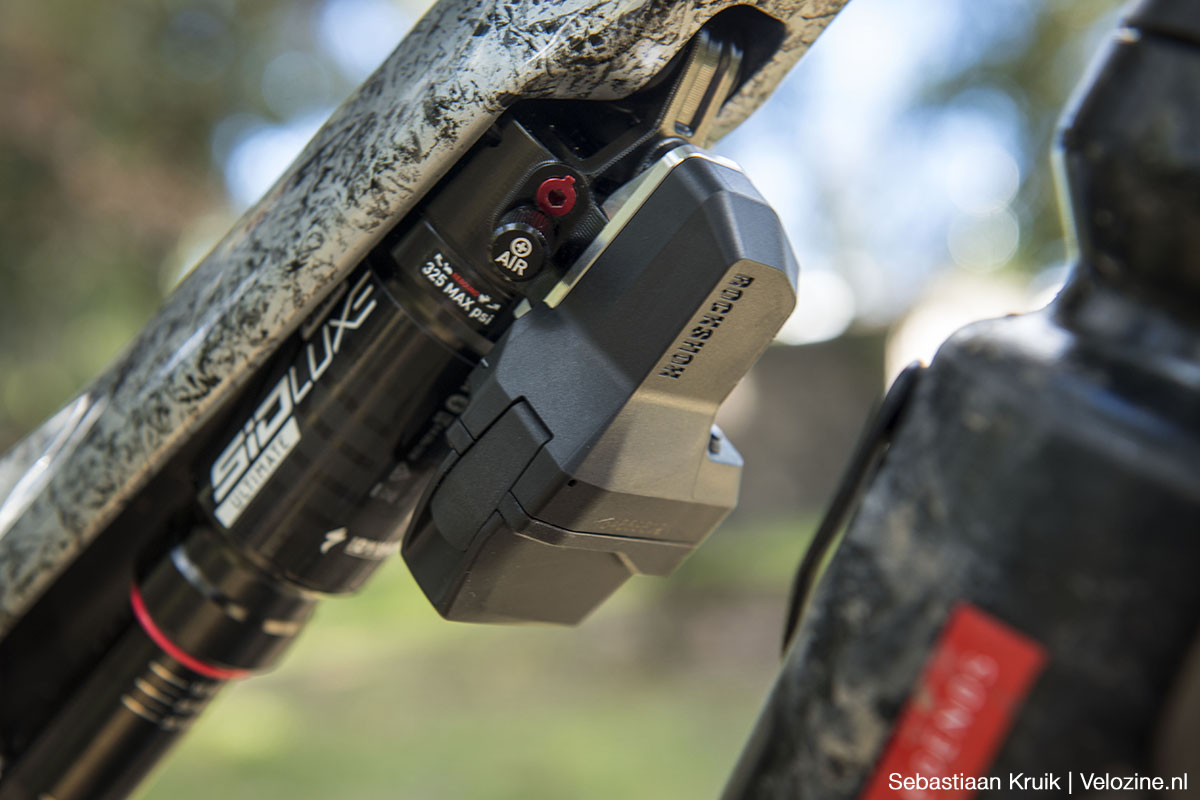 Ook de demperinstellingen van de Epic 8 vind je op de Epic 9 terug: wide open, magic middle en sprint-on-lock. Dat komt inderdaad overeen met de termen open, pedal en lock die je op reguliere Rockshox Sidluxe-dempers vindt, maar Specialized claimt dat de drie verschillende compressie-instellingen op hún Sidluxe-dempers specifiek op de Epic 9 zijn afgesteld. Ze noemen dat Ride Dynamics custom valving en ze maken daar in hun communicatie echt een ding van.