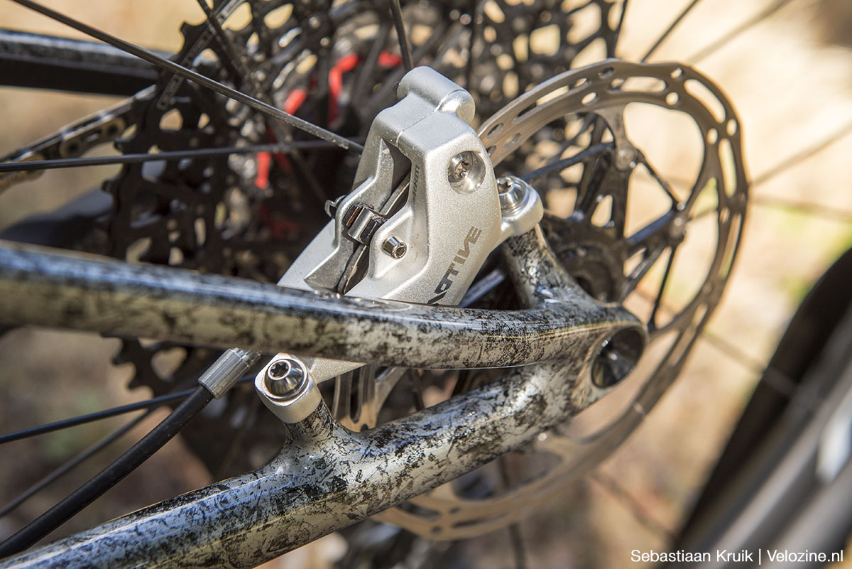 Eveneens nieuw: de liggende achtervork groeit met de maat mee. Hoe groter de maat, hoe langer de liggende achtervork. Ik kom er bij de beschrijving van de geometrie nog even op terug, maar voor nu alvast de opmerking dat ik dit een gunstige ontwikkeling vind. Ik heb namelijk nooit begrepen dat naarmate een frame groter wordt werkelijk álles veranderd, behálve de lengte van liggende achtervork. Ja, door die lengte gelijk te houden bespaart een fabrikant kosten. Maar vanuit de geometrie bekeken is het veel logischer om de achterbrug te laten meegroeien.