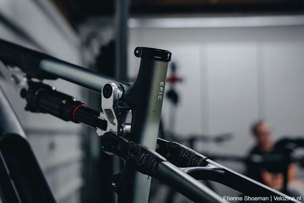 Andere verbetering: de stack – zeg maar de hoogte waarop je het stuur kunt zetten – is bij de Epic 9 beter afgestemd op de behoefte van de gebruikers. “We beschikken dankzij onze Retül-bikefitters over de data van vele duizenden rijders. Op basis van deze data is de stack op de twee kleinste maten verlaagd en op de twee grootste maten juist verhoogd”, zo vertelt McDonald. Ongetwijfeld heeft zijn eigen ervaring daarin ook een rol gespeeld, want deze Specialized-techneut zit vanwege z’n lengte altijd op de grootste maat uit het assortiment.