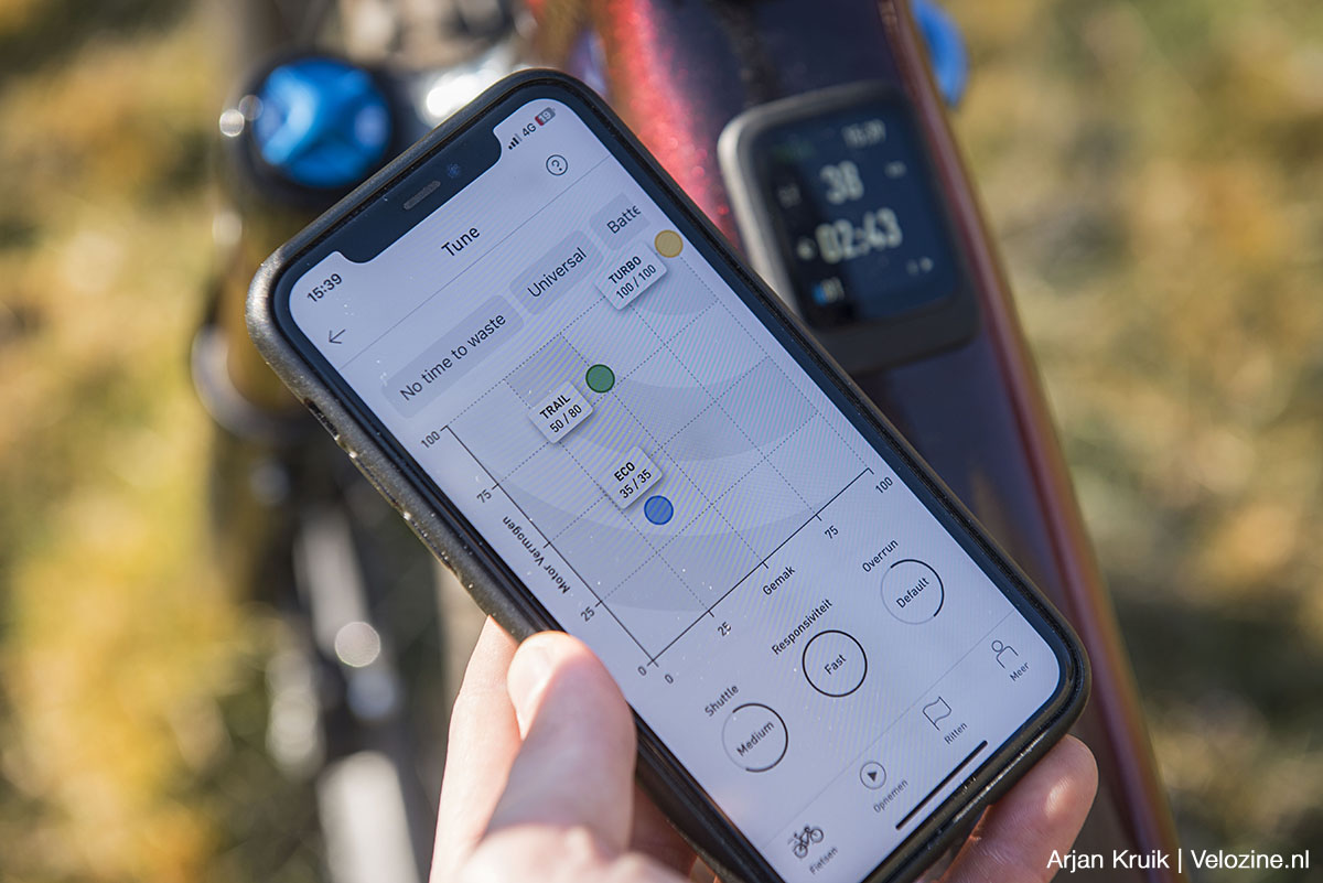 De knopjes links op het stuur zijn nog steeds lekker compact, maar nu met een ‘piefje’ in het midden om sneller door de standen en de menu’s te kunnen scrollen. En, zeker zo belangrijk, dat knopje voelt prettig aan. Er is een duidelijke terugkoppeling, zodat je ook voelt wat je doet. Via de knopjes, maar ook door middel van de Specialized-app is zo’n beetje alles naar eigen smaak te tunen en af te stellen. Nieuw zijn de Apple find my-functie en de op afstand bedienbare system lock.