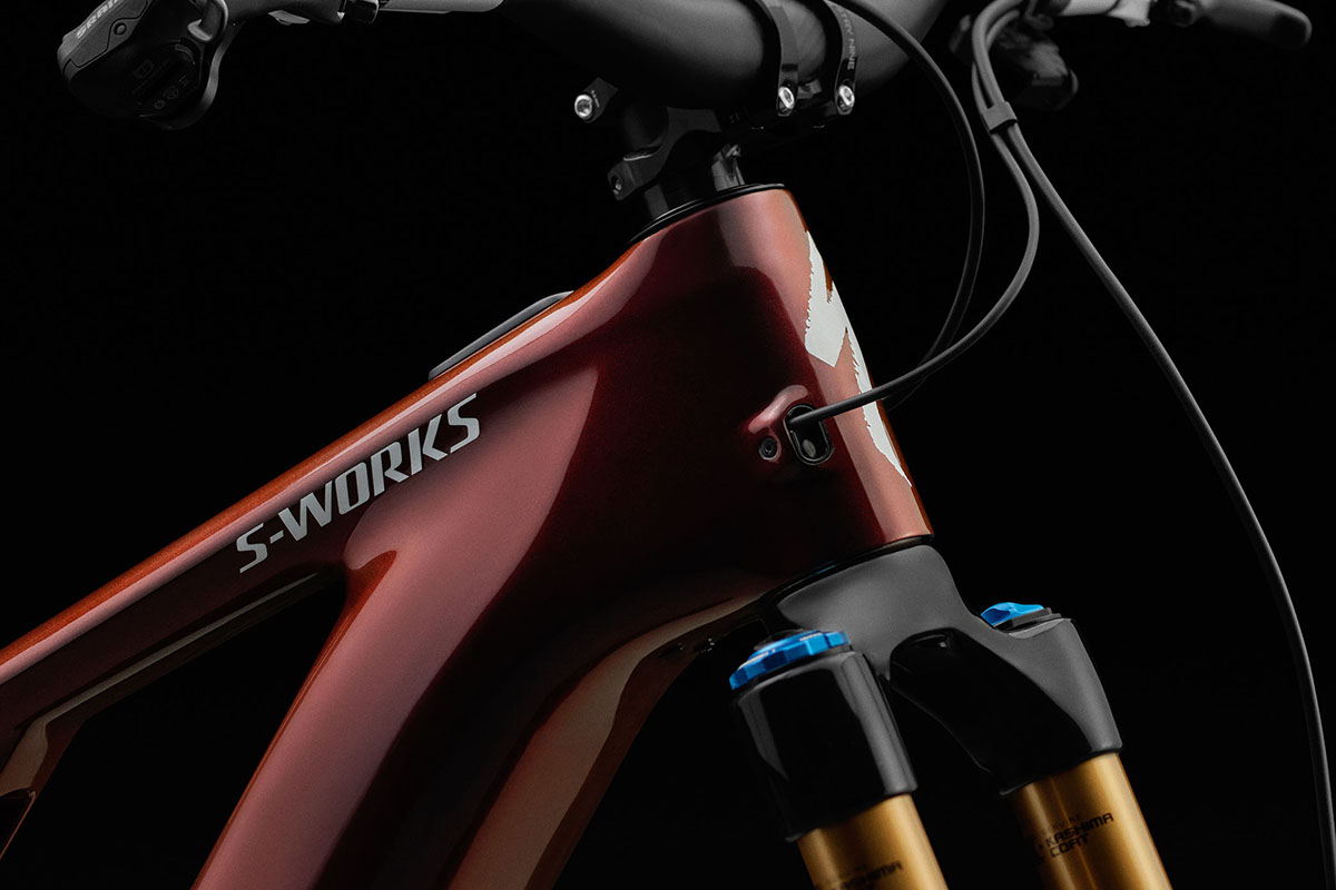 De kabels lopen nog steeds via openingen in de balhoofdbuis het frame in. Elke kabel heeft daarbij z’n eigen kabelgootje. Zo verloopt het trekken van kabels over het algemeen probleemloos en is er gedoe bij het eventueel wisselen van lagers en lagerschalen. Ook goed nieuws: in de maat S4 past nu wel een dropperpost met een verstelbereik van 200 millimeter. Tot slot: in navolging van onder andere Santa Cruz biedt nu ook Specialized een levenslange lagerservice. Zijn ze versleten? Dan krijg je gratis nieuwe lagers.