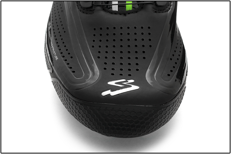 Oke, die woordgrap was te gemakkelijk om te maken, toch denk ik dat er wel degelijk meer gedachte achter de schoen zit, dan het persbericht vertelt. De Inner Fitting Shell die hierboven genoemd wordt, is – als je het mij vraagt – de kern van het geheel. Spiuk heeft de schoenen toch niet voor niet PRO-FIT genoemd? Een goede fit bereik je met schoenen door te zorgen dat schoenen als een tweede huid om de voeten sluiten, zonder ergens drukpunten te geven, maar wel met voldoende support zodat je voeten en pedaal één geheel worden. Met de IFS structuur in de schoen, bereiken ze naar mijn idee precies dat: stevigheid waar nodig. Het stukje geperforeerd materiaal wat er voor de vorm nog omheen zit, hoeft dan eigenlijk alleen nog soepel te zijn om drukpunten te voorkomen.