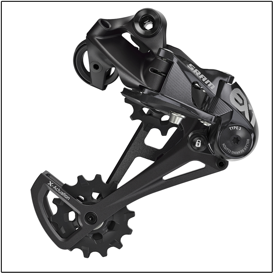 - EX1 achterderailleur – X-Horizon type met kooi blokkering en roller bearing clutch voor behoud van kettingspanning – 289 gram – €165