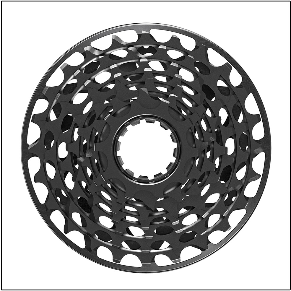 Toch jammer dat SRAM niet meteen de kans beetgenomen heeft om een kortere body te gebruiken met speciale naaf zodat de spaken aan de drive-side meer in paraplu stand staan als ze nou toch een speciale cassette gebruiken met minder tandjes (en dus minder breed).