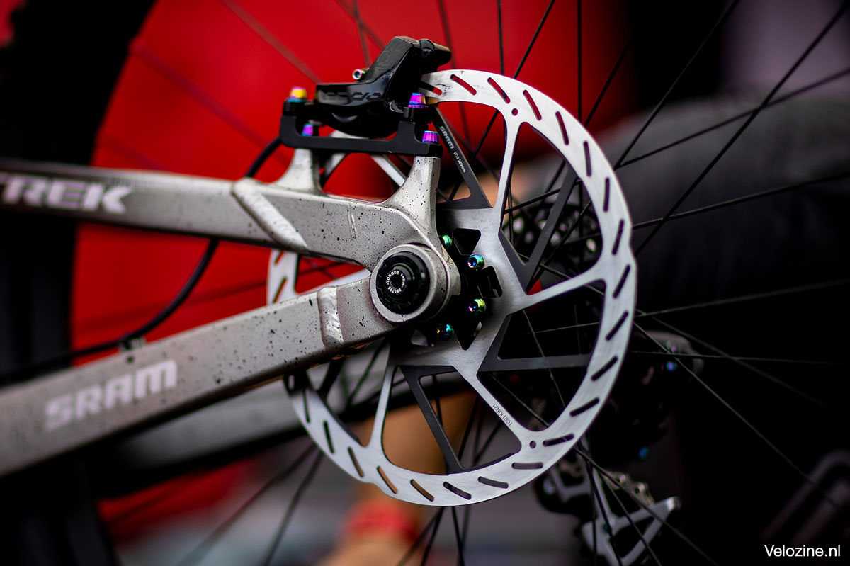 Dat vindt Sram ook, want ze brengen onder de naam HS2 een serie nieuwe remschijven met een dikte van 2 mm. Dat is 0,15 mm dikker dan de Sram Centerline-remschijven. Sram claimt een betere warmteafvoer, minder geluid en meer stopkracht dan de Centerline-remschijven. Sram noemt in deze context een percentage van 7%, maar niet duidelijk is of dit voor álle schijfdiameters geldt. Zwaarder zijn de HS2-schijven ongetwijfeld ook, maar Sram houdt de exacte gewichten nog even onder de pet.