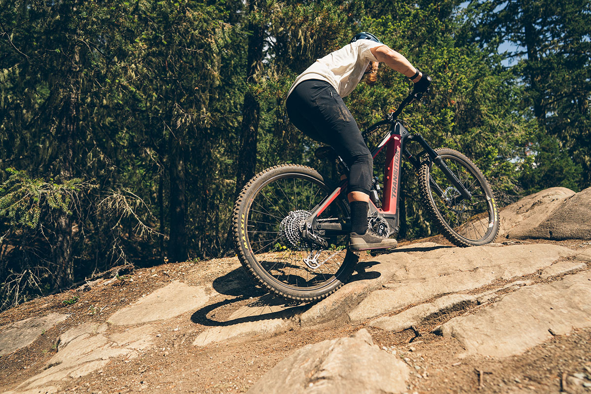 Voorafgaande aan korte klimmetjes of het oprijden van een obstakel zet je normaal gezien altijd even extra aan. Als je dan dus kortstondig even snel trapt, schakelt het geautomatiseerde schakelsysteem zeer waarschijnlijk toch een tand zwaarder. Bij Eagle Powertrain heb je dan dus nog gewoon het volledige assistentiekoppel ter beschikking. Maar schakelen kan nog steeds flink verstorend zijn wanneer je met jouw beenvermogen, het assistentiekoppel én flinke body language bezig bent je bike het obstakel op te worstelen. We zijn dus erg benieuwd hoe dit in de praktijk uitpakt ten opzichte van de concurrentie.