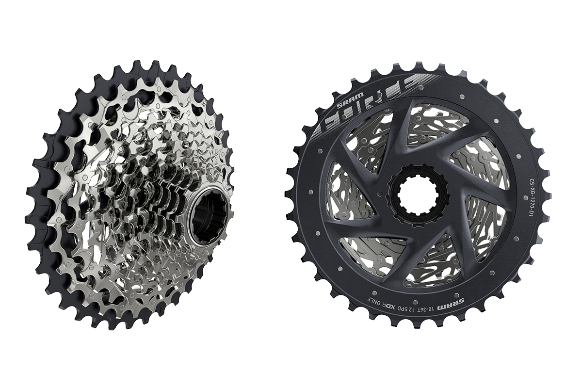 De Red-groep krijgt niets van dit. Er is zelfs geen ‘echte’ Red Wide-cassette. In plaats daarvan bieden ze de XG-1270 10-36t cassette uit de Force groepset aan met een gewijzigd uiterlijk. Dit is een cassette die – in tegenstelling tot die uit de Red-serie – niet uit één stuk is CNC gefreesd, maar uit losse kransen is opgebouwd en met pinnen is verbonden. PinDome, noemt Sram dit. Alle XG-1270 cassettes hebben nu wel nikkel-chroom afwerking, waarmee ze ‘sjieker’ over zouden komen en zodoende óók goed matchen met de duurdere Red-groepset.