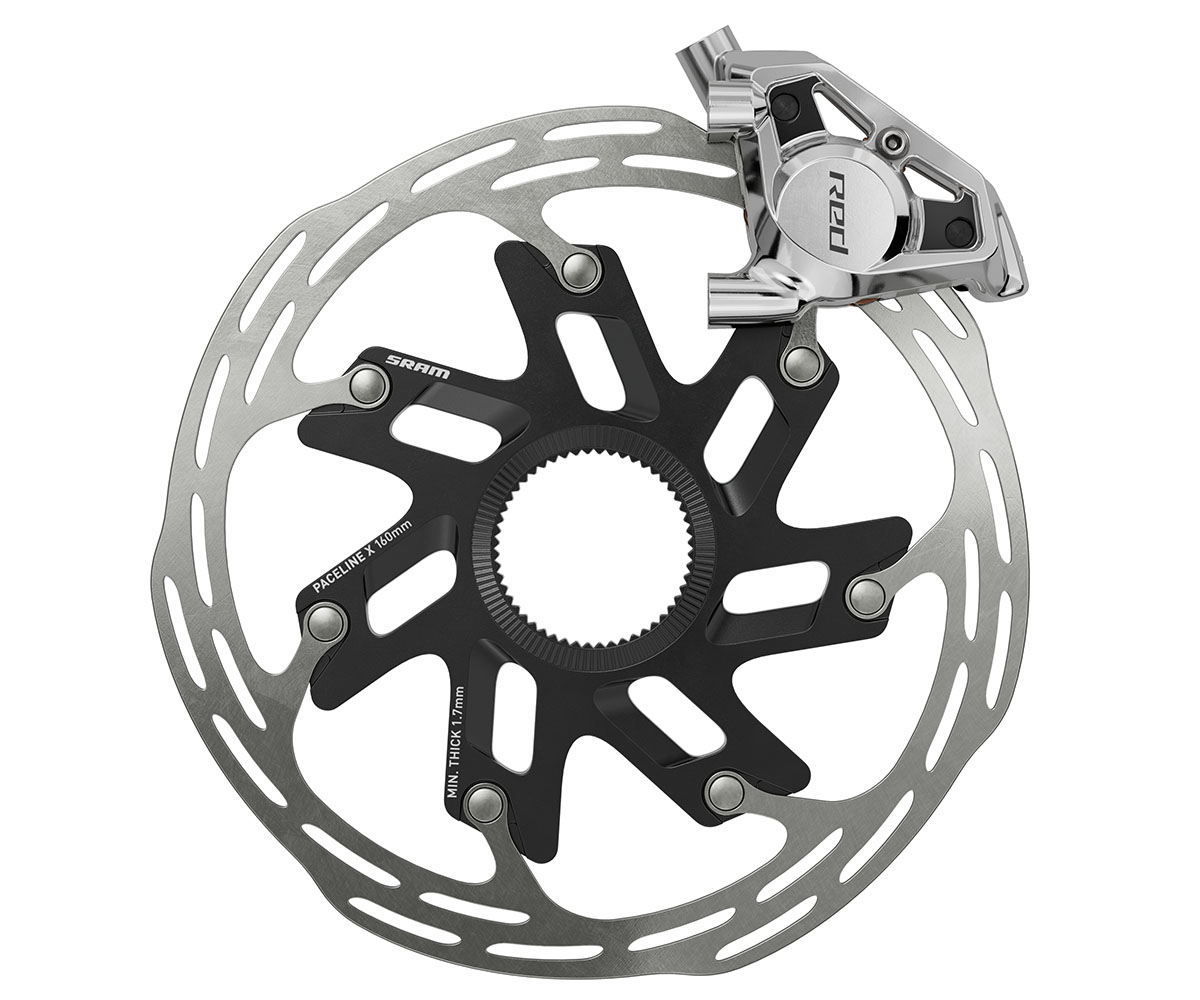 Ook de remklauw en de remschijven werden bij de introductie van de nieuwste generatie Red door Sram herzien. Zo is de remklauw nu stijver. Ook is de plek waar de remzuigers hun druk op de remblokken uitoefen verder naar de omtrek van de remschijf verplaatst. Sram claimt dat hierdoor de remdruk op een nuttiger deel van de nieuwe remschijf overgebracht wordt. En dat geeft meer consistente remprestaties. De vernieuwde Paceline X-remschijven zijn bovendien ook 8 gram lichter dan de voorgaande Centerline XR-exemplaren. De Paceline X-remschijven zijn er in 140 en 160 millimeter diameter en alleen met centerlock-montage.