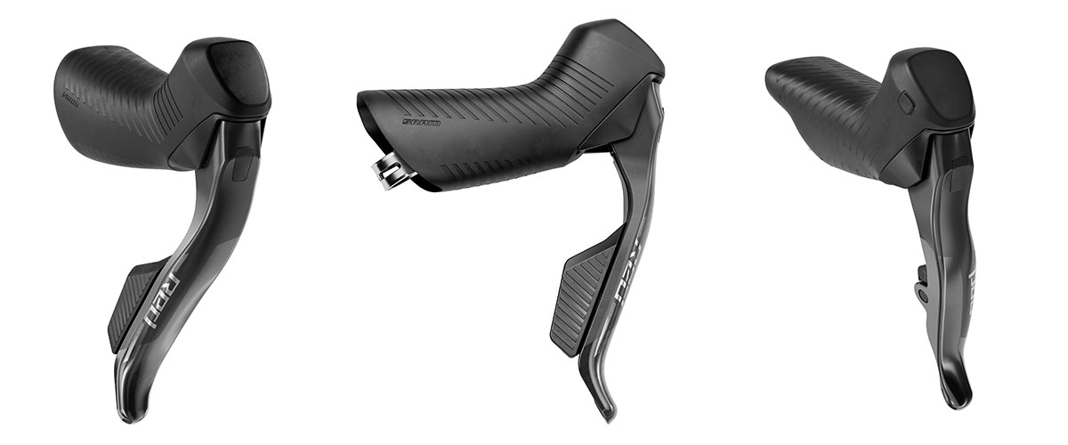 Het scharnierpunt van de remgreep is ook hoger geplaatst, wat een gunstig effect heeft op de overbrengingsverhouding van knijp- naar remkracht. Voor dezelfde remkracht hoef je nu minder hard te knijpen. Volgens Sram is de nieuwe Red-remhendel van bovenop de greep gemakkelijker met één vinger te bedienen.