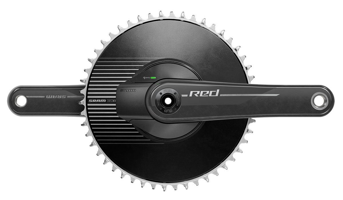 De carbon armen hebben de nieuwe 8-bouts bladbevestiging en er zijn diverse opties voor kettingbladen. Een vermogensmeter is ook leverbaar. Die wordt bevestigd op de 8-bouts verbinding, waarna specifieke kettingbladen middels Thread Mount op de vermogensmeter wordt bevestigd. De Red XPLR AXS-vermogensmeter heeft 1,5 procent nauwkeurigheid en meet het vermogen van het linker- én rechterbeen.