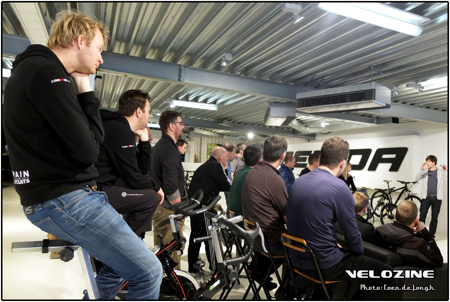 Afgelopen zaterdag was de eerste Back Stage Serie bij Merida in Apeldoorn. De eerste in een reeks van vier dit jaar, die wij organiseren samen met de collega’s van racefietsblog.nl. Begeleid door een waterig voorjaarszonnetje druppelden zo’n 25 fietsers uit het hele land (en België) rond 12 uur binnen om in het Experience Center. Met koffie, appeltaart een welkomstwoord en een korte introductie van het merk Merida achter de kiezen, stonden de aanwezigen al vrij snel in de rij voor het hoofdevenement van die dag: fietsen! Voor de mountainbikers had Merida een lading Big Nine en Big Seven’s laten uitrukken, voornamelijk voorzien van een XTR afmontage. De wielrenners mochten voor een groot deel kennismaken met racefietsen met schijfremmen, iets wat de meesten natuurlijk nog niet gewend waren.