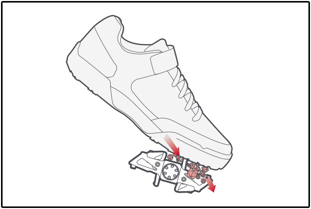 Uiteraard maakt de ‘8’ gebruik van de befaamde ATAC-binding. De zelfreinigende eigenschappen en consistente bediening, maken het één van de best presterende bindingstypen die er zijn. Overigens is ook de veerkracht van de binding per pedaalzijde instelbaar.