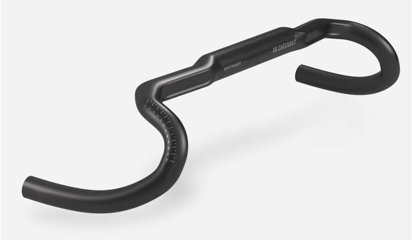Trek lanceert het GR Checkout-gravelstuur om daarin nog een stap verder te gaan. Om tegenwicht te bieden aan de grote naloop van het voorwiel is dat stuur vrij breed. Meest kenmerkend zijn de ver onderuit getrokken zijkanten, die in totaal twaalf centimeter breder zijn onderaan dan bij de grepen. Deze extra breedte geeft nog meer controle en zet de handen en polsen in een iets natuurlijke positie om zodoende langdurig comfortabel onder in het stuur te kunnen hangen. Een effect dat we eerder al zagen bij het gravelstuur WCS Beacon van Ritchey. De bovenzijde van het stuur heeft een acht graden achterwaartse en vier graden neerwaartse buiging voor eveneens een meer ergonomische houvast.