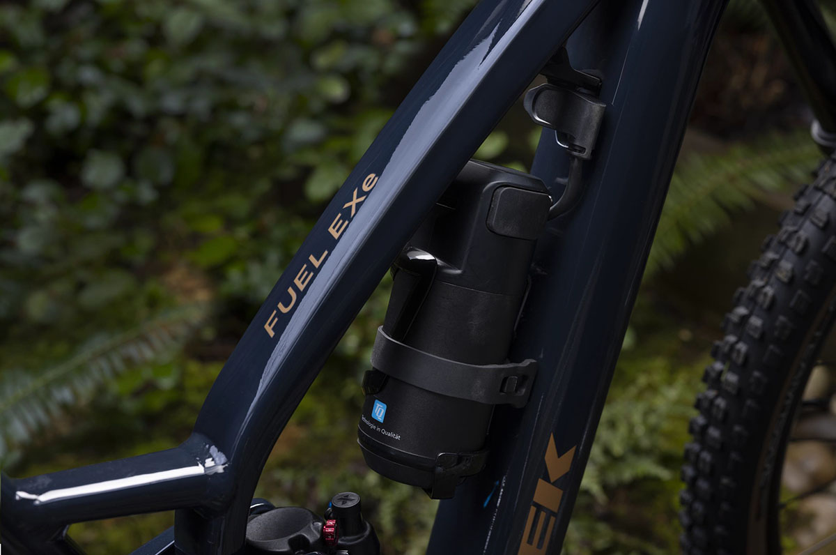 Het hart van de Fuel EXe aluminium is dezelfde HPR50-motor van de Duitse firma TQ. Deze uiterst compacte motor met 50 newtometer koppel is uniek door de overbrenging tussen de motor en de trapas die ze ‘Harmonic Pin Ring’ noemen. Die maakt niet alleen dat de motor uiterst compact en met 1.850 gram erg licht is, hij is bovendien extreem stil. Ook de 360 wattuur-batterij (1.835 gram) die we in de carbon Fuel EXe tegenkwamen, vindt zijn weg naar de aluminium versie. Daarmee heb je volgens Trek 2 tot 5 uur ondersteuning. De losse extender van 160 wattuur brengt je nog een 40 procent verder.