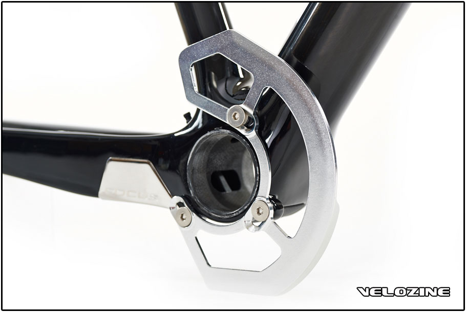 SRAM introduceerde afgelopen jaar met de onthulling van de XX1 groepset de term chain management. Ook Focus gaat mee in deze management-cultuur en heeft de nieuwe Mares CX voorzien van een geleideplaat rondom de trapas. Deze zit gemonteerd op montagenokken volgens de ISCG05 richtlijnen en werkt samen met crankstellen voorzien van twee kettingbladen. Een ketting die bij een schakelactie of door impact van een hobbelige ondergrond van het binnenste kettingblad op het frame valt, moet daarmee verleden tijd zijn.
