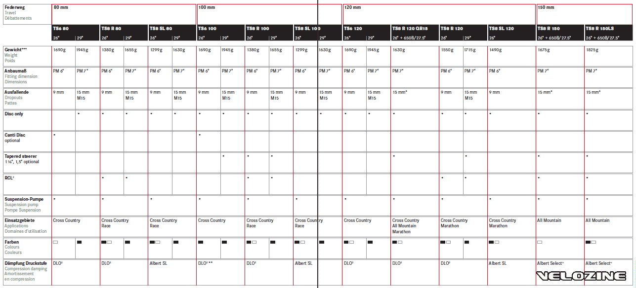 Vreemd genoeg noemt Magura in deze opsomming een 140 mm vork… die waren we echter nog niet als zodanig tegen gekomen in de opsomming. Dit zal zeer waarschijnlijk de Lift Select versie van de TS8 R 150 betreffen, met verstelbare veerweg dus.