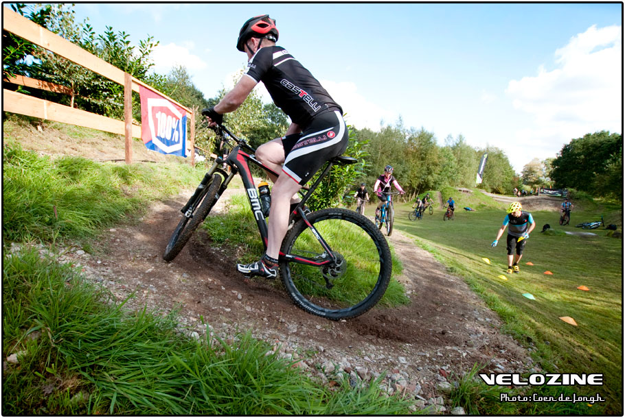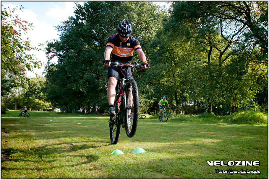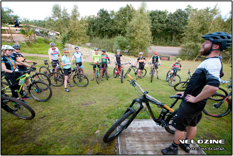 Ook voor de gevorderde rijders waren er ‘momentjes’. Dropoffs rijden; uiteraard. Switchbacks omhoog? Dat konden sommigen ook vlot. Of viel er toch wat te verbeteren? Onder begeleiding van coaches Han Hoving en Maurice Heijnen kwamen ingeslopen automatismes naar voren. Zeker op het gebied van het vooruitkijken kunnen zelfs ervaren bikers nog aangescherpt worden. En ook al lukt die switchback naar boven én naar beneden; zodra je in stappen uitgelegd krijgt hoe je zo’n obstakel heelhuids doorkomt, wordt je ineens geconfronteerd met de ‘echte werking’ achter zo’n handeling en bewust hoe je niet alleen je voorkeursbocht foutloos doet, maar ook waar het dus mis gaat bij de bochten de andere kant uit.