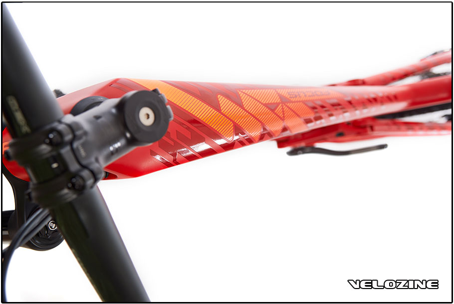 Details die we bij de SAM C zagen, zien we ook hier: een bovenbuis die nabij het balhoofd breed uitloopt en bij zowel de alu als carbon variant eveneens alle kabels netjes binnendoor. Daarbij zijn de kabelgeleiders te wisselen voor het geval je een XTR Di2 setje wilt monteren. Op alle framematen zijn twee bidonhouders te monteren en natuurlijk behoort een dropper zadelpen met interne kabelgeleiding tot de opties.