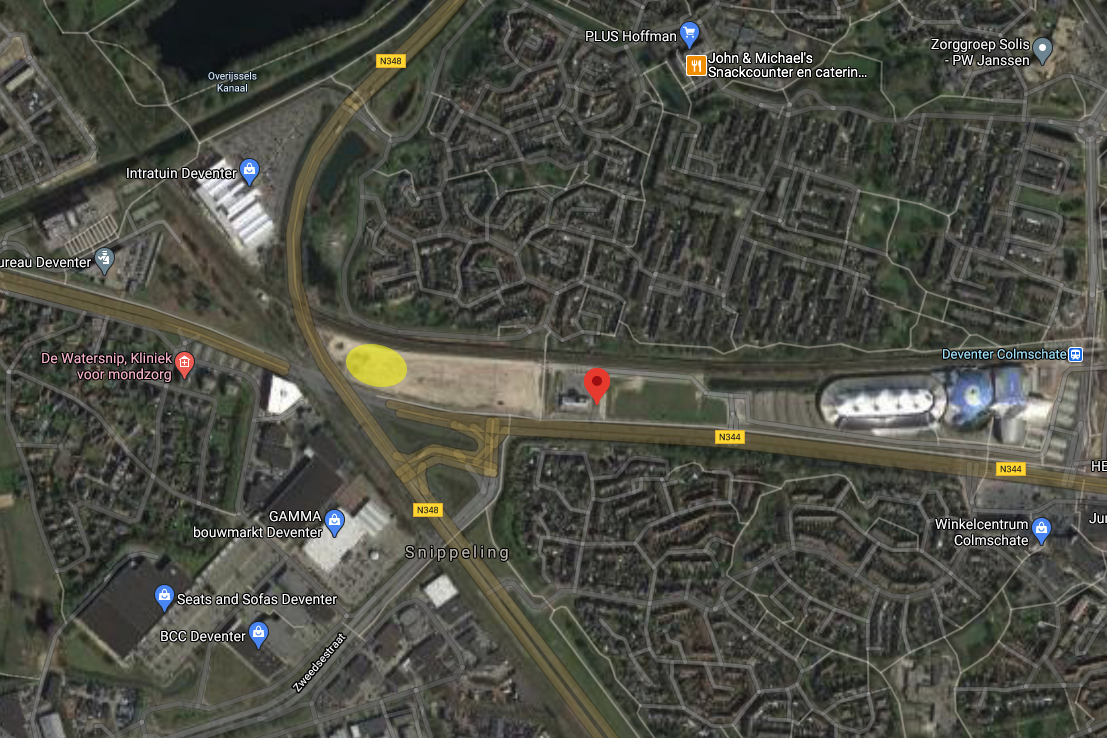 Marin: “We hebben ongeveer 3500 m2 grond ter beschikking op de zogenaamde “leisurestrip”, een langwerpig stuk land langs tussen spoor en rondweg, met precies het juiste bestemmingsplan: sport en recreatie. Je vindt daar ook Sportcentrum De scheg, een fitnessblokkendoos, een speelcentrum (en, erg ‘logisch’, een Mac – red.). We mogen de grond gebruiken totdat deze ontwikkeld gaat worden. Het is dus tijdelijk. Misschien zitten we daar vier jaar, misschien moeten we met een jaar weer weg. Dat zien we later wel. Het is overigens bewust de uiterste punt van het terrein: dat wordt als laatste verkocht.”