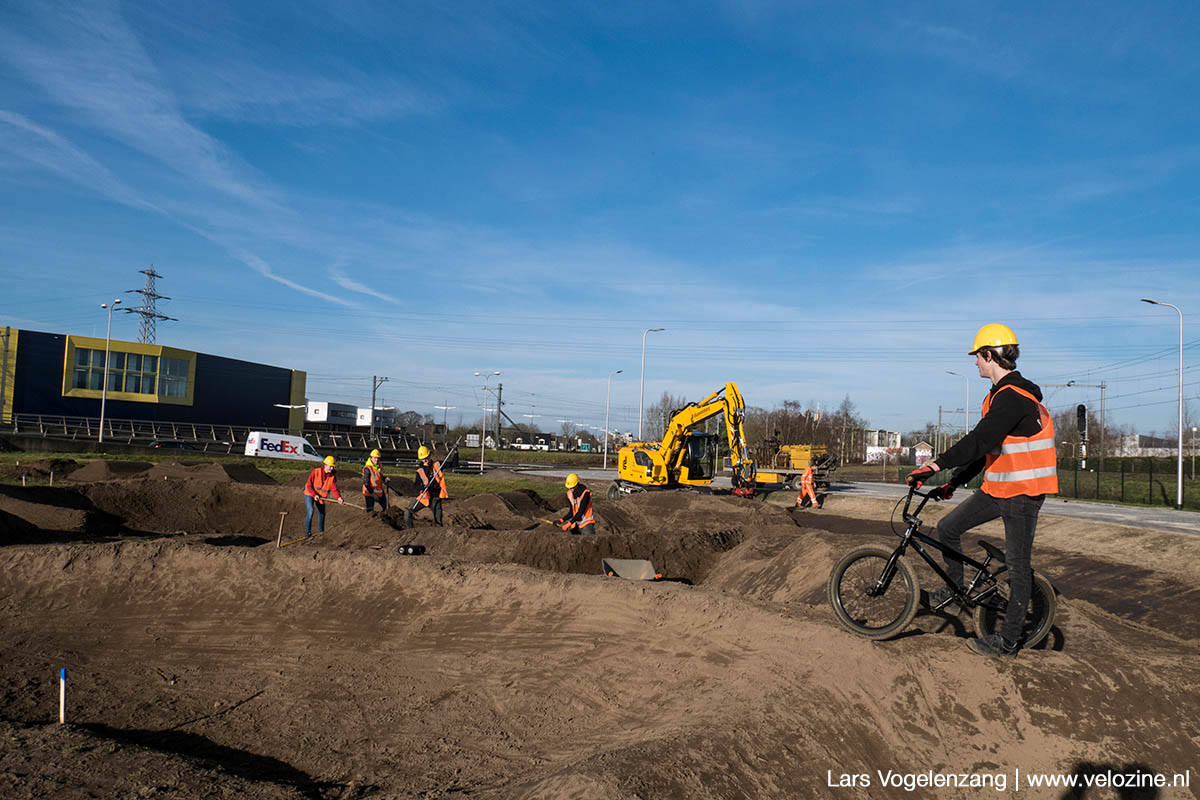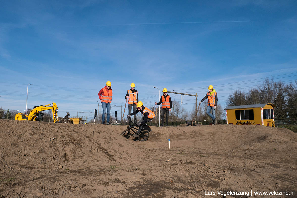 Marin: “De baan is onverhard en de buitenring wordt zo’n 50 x 65 meter. We bouwen tot ongeveer een meter boven het maaiveld, maar gaan eronder. Dan heb je al snel leuke bulten! Het grappige is ook: We hadden hem ontworpen voor BMX’jes, onze verwachting was dan ook dat je het met ‘een 29er mountainbike’ héél lastig zou worden om te rijden. Maar wat blijkt: zelfs dát lukt!”