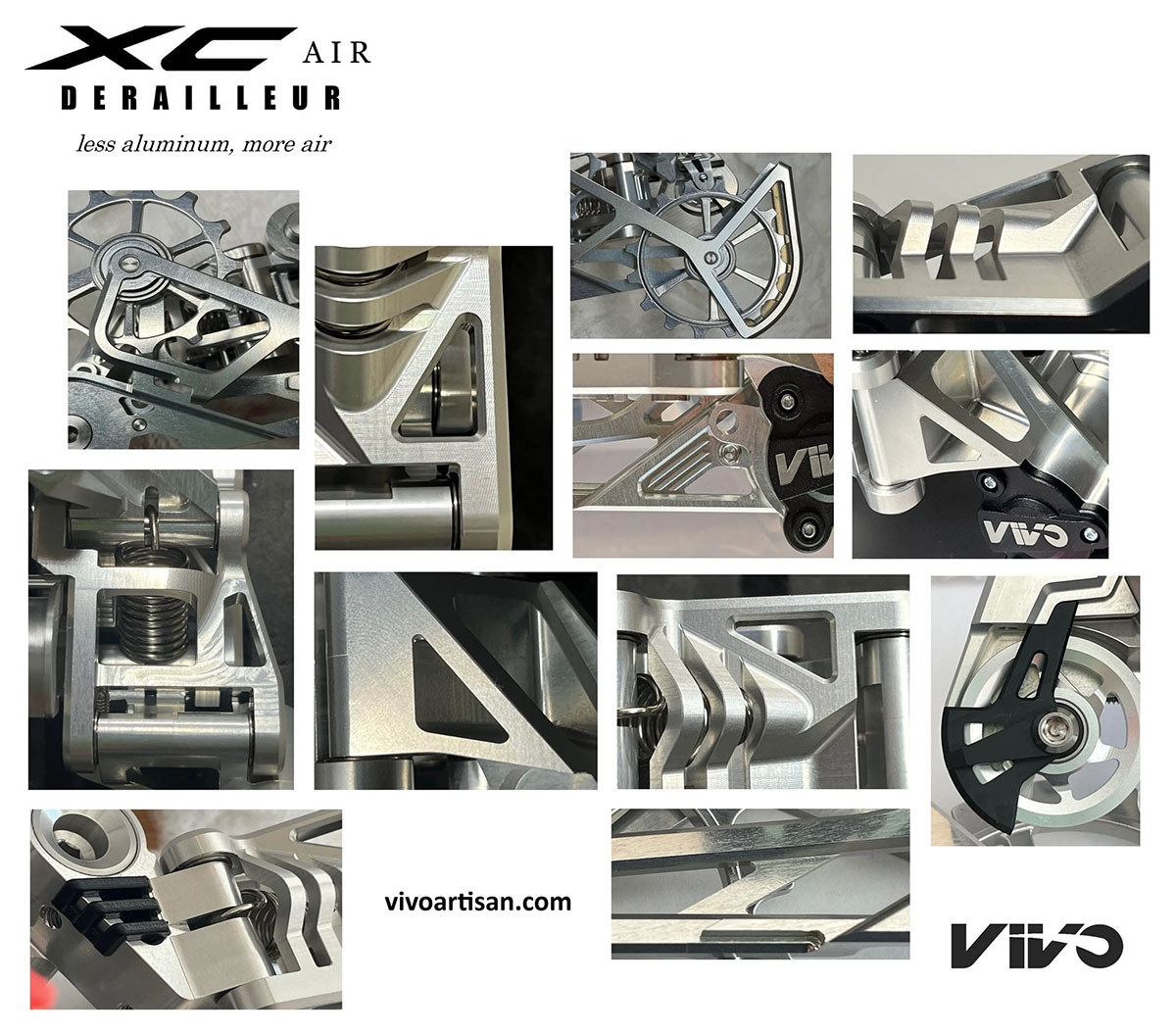 Vivo construeert de XC Air grotendeels uit 7075-aluminium. De bouten zijn allemaal van titanium en de aluminium derailleurwieltjes draaien op keramische kogellagers. Verder zijn alle scharnierpunten uitgevoerd met afgedichte industrielagers. Daarmee moet de derailleur niet alleen stijf zijn en soepel werken, maar vooral ook langdurig dat blijven doen. Uiteraard heeft het kooischarnier een clutch (wrijvingsdemping), afgedekt door een kunststof kap in plaats van de aluminium versie bij de Enduro.