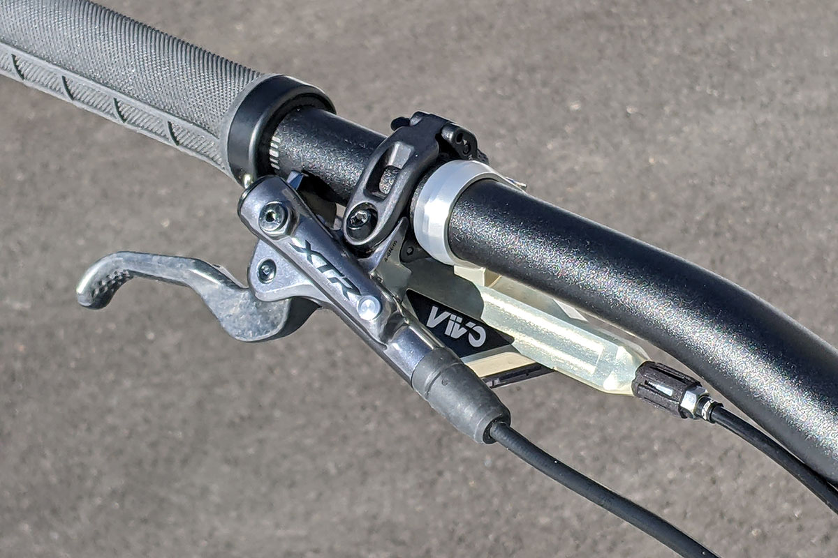 Samen met de XC Air-derailleur brengt Calendrille ook de nieuwe schakelaar XC Linear Stealth. Die is qua binnenwerk fundamenteel anders dan bestaande schakelaars. Bij vrijwel elke mechanische schakelaar rolt de kabel op of af rond een schijf. Bij de XC Linear beweegt de kabel rechtlijnig, lineair dus. De behuizing is daardoor opvallend slank en langwerpig, en loopt bovendien meer parallel met het stuur.