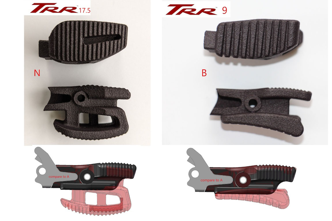 De vormen veranderen ook wáár je duim op de hendel duwt. Zodoende verandert ook de slag die je duim maakt om te schakelen iets en bijgevolg ook de kracht die je nodig hebt om te schakelen.