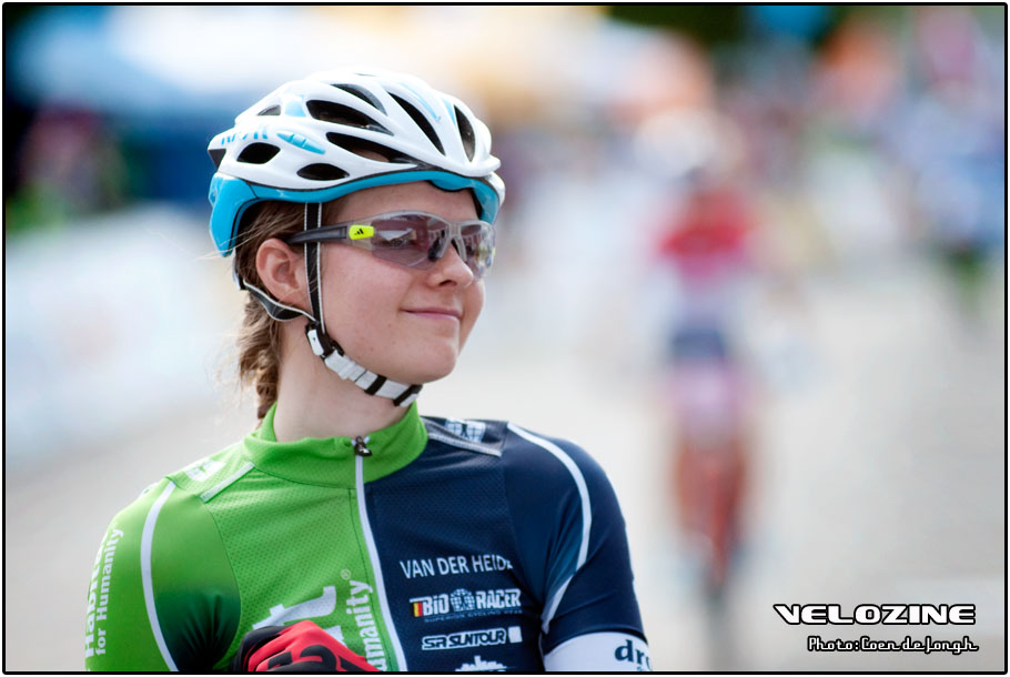 Let op deze dame, ze komt er weer aan. Vanuit ergens in het midden van het veld na de start, reed ze sterk terug naar plaats 3.