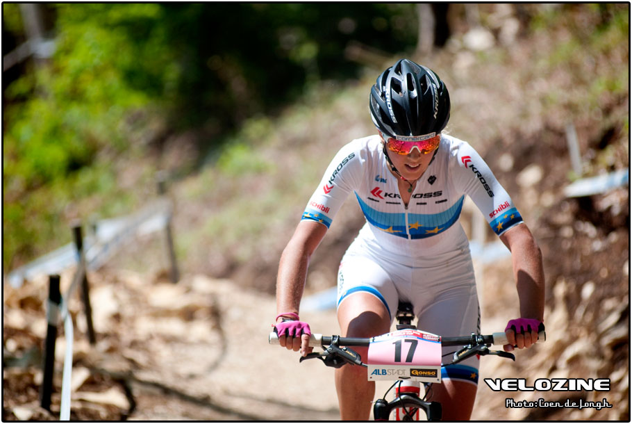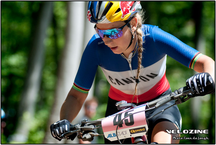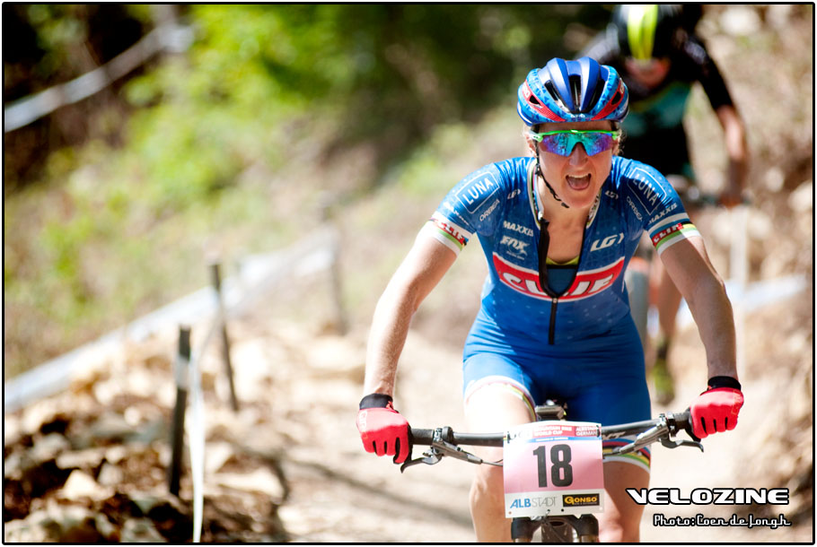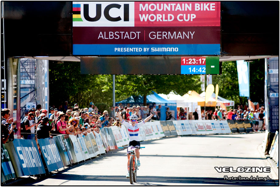 Na track-previews, pit walks en voorbeschouwingen, is het nu tijd voor the real deal: in dit geval de dames elite race. Was het enkele jaren geleden daar nog niet zo spannend, omdat bv. Jolanda Neff toch alles won, tegenwoordig lijkt de hele top 10 wel de winst op te kunnen eisen. In Albstadt was het niet veel anders. Lang verhaal kort: Yana Belomoina won en troefde daarmee onder andere Maja Wloszczowska en bovengenoemde Jolanda Neff af. De Duitse Sabine Spitz wilde voor eigen publiek natuurlijk maar al te graag laten zien dat ze nog steeds mee kon, maar moest een voortvarende start later terugbetalen.