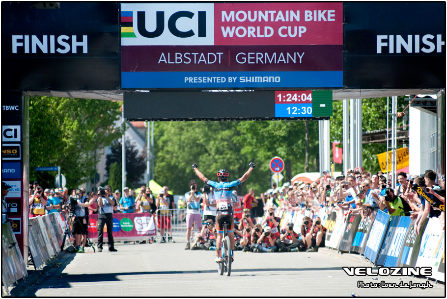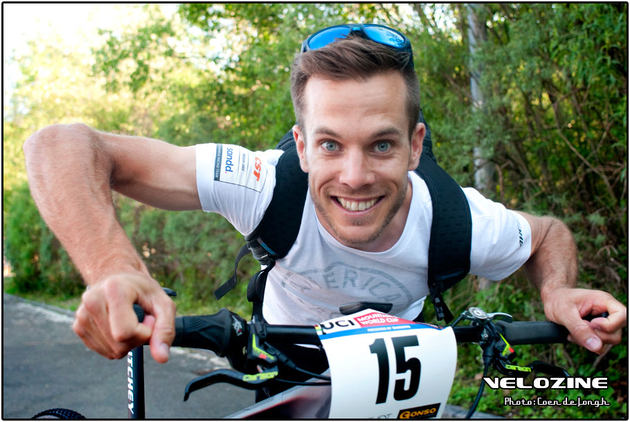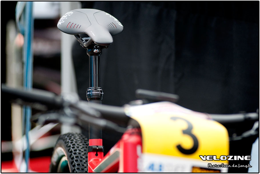 Mr. hardtail 26-pouces Julien Absalon is helemaal bekeerd. Ook dit weekend rijdt hij met een 75 mm dropperpen van Kindshock.