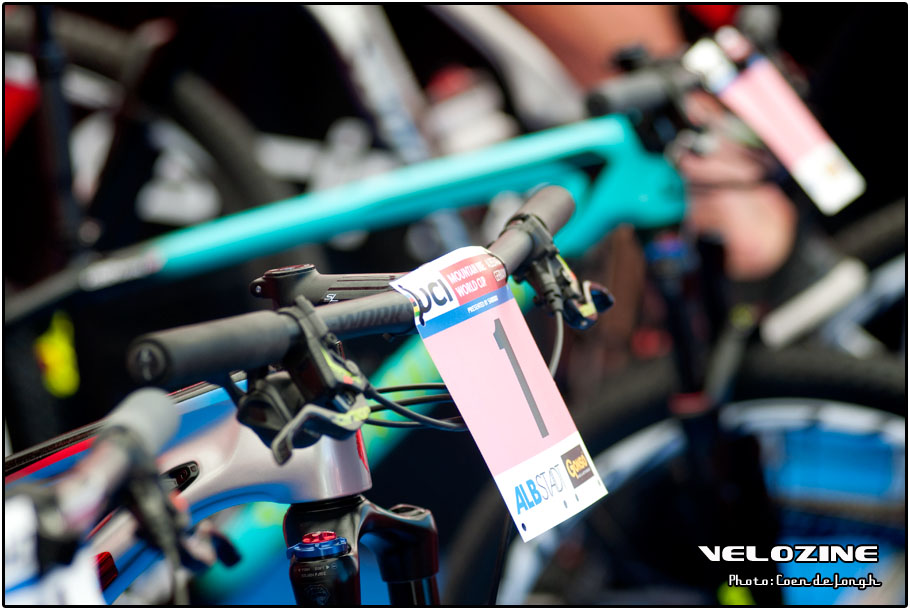 Na de parcours verkenningen en trainingen, is er in de pitstraat ook nog vanalles te zien en beleven. Het World Cup circuit is namelijk het testterrein voor de fabrikanten om weer eens wat lichters nieuws uit te proberen en voor de rijders en rijdsters om hun eigen racepaardje net weer even anders te maken dan de rest. We deden een rondje (of eigenlijk 10 rondjes) en dit viel ons op…