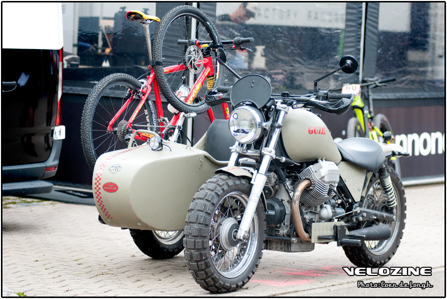 Ride in style to the trail: Met je Moto Guzzi en old Skool Cannondale op de zijspan