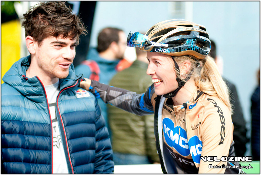 Bij het KMC Ekoi Orbea team rijdt iemand met een bekend gezicht rond… ik kwam er maar niet op wie het was, totdat ik haar naast deze hipster met Redbull jackje zag staan… toen wist ik het nog steeds niet.