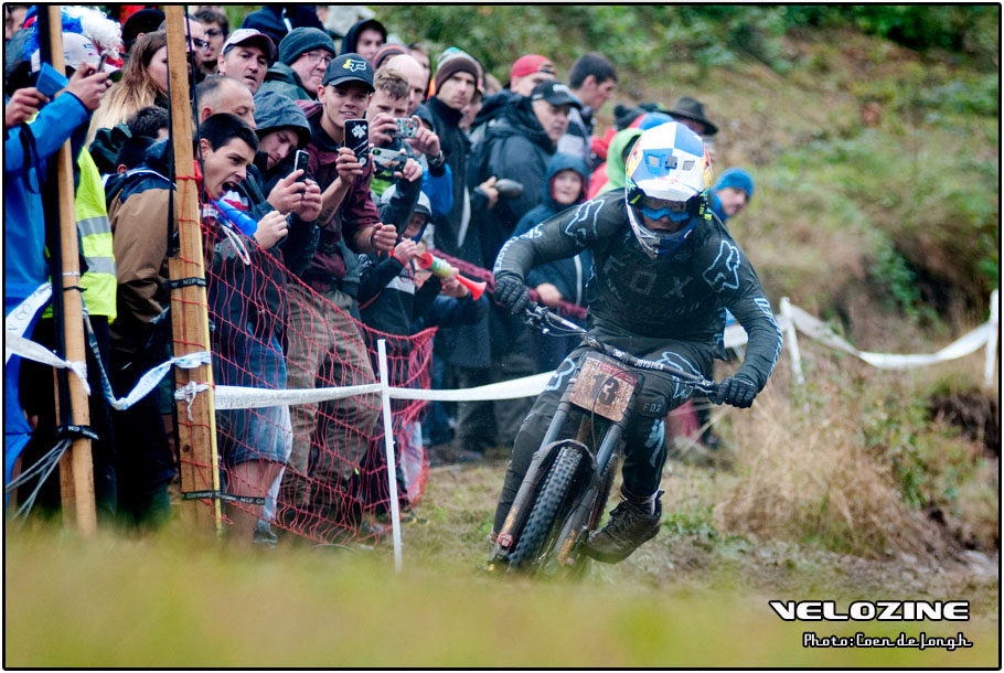 De herenrace daarentegen, daar kon zowat het halve veld winnen. Fransen favorieten als Amaury Pierron, Loïc Bruni en de geduchte tegenstanders zoals Aaron Gwin, Danny Hart en Gee Atherton zouden hier de dienst wel uitmaken. Als (Belgisch) duveltje uit een doosje, reed nduro specialist Martin Maes halverwege het veld echter een snelle tijd. Toen Gee Atherton enkele momenten later niet aan zijn tijd kon tippen, werd het snel duidelijk dat Maes wel eens heel lang stand kon houden.
