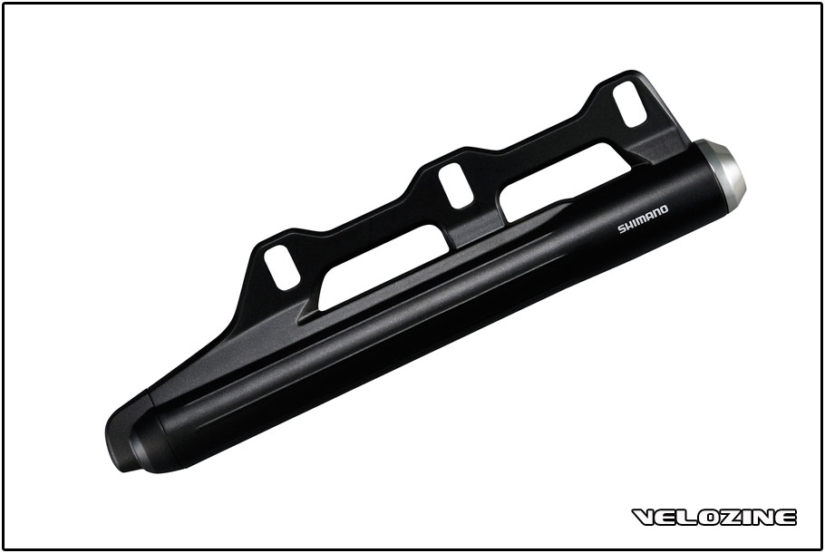XTR DI2 is compatible met zowel de ‘oude’ externe batterij (SM-BTR1) als de in de zadelpen te integreren batterij (SM-BTR2) van de wegrace groepen. Veel bikers maken echter gebruik van de zonet genoemde verstelbare zadelpen, waardoor de geïntegreerde batterij niet toepasbaar is. Ook vormt de vormgeving van menig full suspension frame een uitdaging voor het wegwerken van een batterij. Om die reden heeft Shimano dan ook een nieuwe externe batterij ontwikkeld. Deze heeft de vorm van een compacte pomp en wordt gemonteerd op de boutgaten voor je bidonhouder.