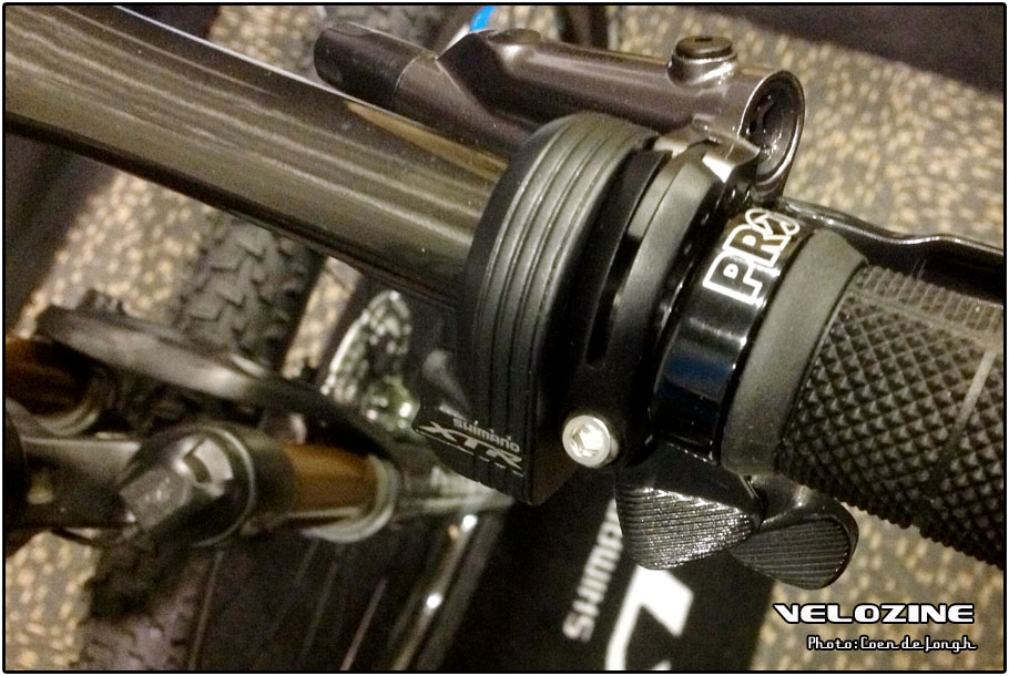 De shifters passen perfect bij Shimano remmen, maar zijn dermate compact dat nagenoeg elke remgreep toepasbaar is. De schakelknoppen hebben een korte slag met een duidelijk gedefinieerde ‘klik’. Dat zou voldoende feedback moeten geven om in de heftigste passages – zelfs met dikke handschoenen – trefzeker te kunnen schakelen. In tegenstelling tot de mechanische shifters, waarbij je zowel met de duim ‘duwend’ als de wijsvinger ’trekkend’ af kan schakelen, zijn de Di2 schakelaars voor op- en afschakelen beide van het duw-type.