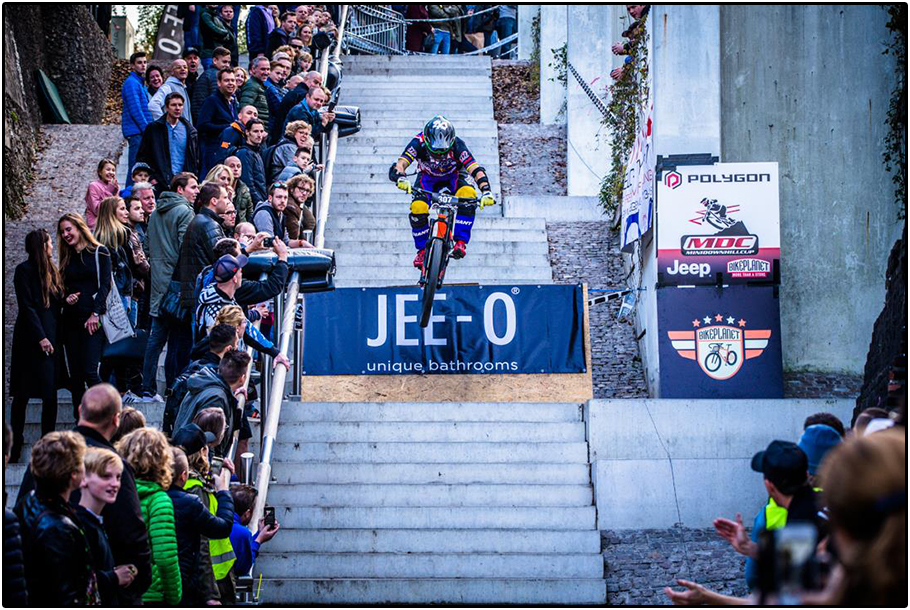 Dit weekend kun je dat zelf ook live gadeslaan in Nijmegen tijdens de JEE-O City Downhill. Het is al weer de vijfde keer dat deze urban downhill plaatsvindt en het is eveneens de finale van de Mini Downhill Cup 2017. Het parcours loopt vanaf het Vlakhofpark dwars dóór Huis voor de Kunsten ‘De Lindenberg’ via de Veerpoorttrappen naar de Waalkade. De finish is pal voor de deur van Holland Casino.