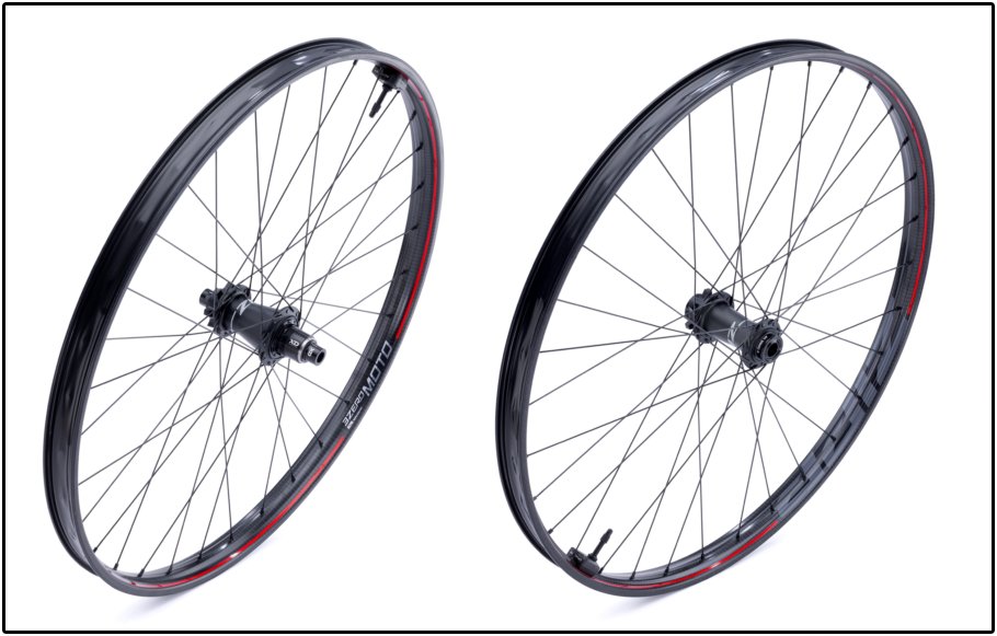 De 3ZERO MOTO velgen worden los of als complete wielset verkrijgbaar, in 27,5″ en 29″ diameters. De velg meet aan de buitenzijde 37,5 mm; intern is de velg 30 mm breed. De spaakgaten zijn asymmetrisch in de velg geplaatst. De complete wielen krijgen 32 spaken per wiel en ZM1 naven met een 52-tands vrijloop (dus 6,9 graden vrije slag). Daarnaast worden wielsets standaard geleverd met TyreWiz om real-time banddruk te meten.