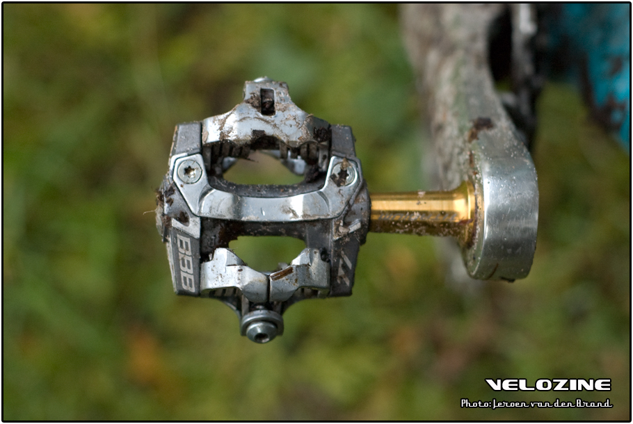 Nu had dit stampen ook nog een ‘wetenschappelijk’ nut; achter de modder lagen dennennaalden en ander restanten flora die maar wat graag onder mijn schoenzolen bleven plakken. Ook de dikste modder en klodders droog zand die ik op pikte achter een plas weerhielden de pedalen niet van een snelle en duidelijke klik-actie, zodat je zonder twijfel na de elegante opsprong weer door kunt met onvervalst pedaalduwen vanaf de eerste pedaalslag.