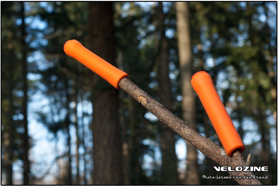 Bikeribbon stuurde ons op weg met twee sets oranje grips: Een set SiO2 Race met een buitendiameter van 30 mm en een set SiO2 Extralite met een gemeten diameter van 33 mm en… over de hele lengte doorlopende gaatjes?!