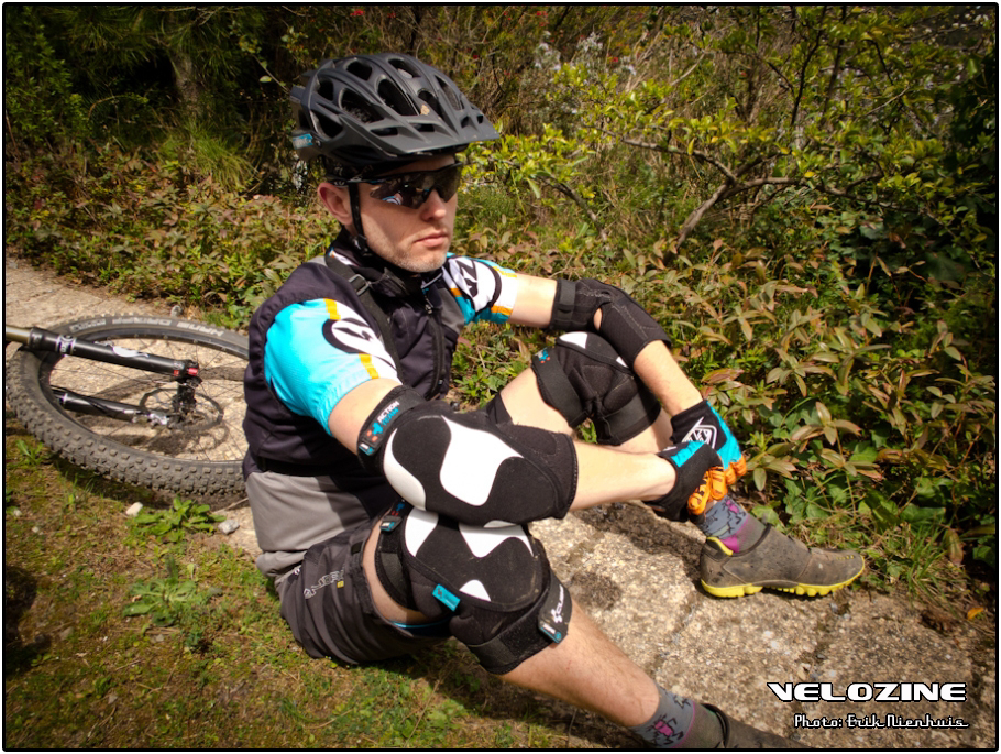 Dat geldt ook voor het draagcomfort; uiteraard merk je dat je protectie aan hebt, maar de bewegingsvrijheid is groot. Zelfs bij het zittend trappen op je gedropte zadel, waarbij je kniegewrichten dus méér doorbuigen, ondervond ik geen hinder in knieholtes of dat de protectoren zichzelf strakker trokken aan de voorzijde. Eigenschappen die het voor mij minder relevant maakte dat ze wat minder handig aan of uit te doen zijn. Door de sleeve-constructie moet je je handschoenen af en je fietsschoenen uit doen om de protectoren aan of af te doen. Bij een rit met veel afwisseling tussen ‘gnarly downhills’ en stevige klimstroken wil je daar liever niet telkens tijd aan kwijt zijn. Ik heb ze dan ook vaak de hele dag aan gehad en slechts als er een klim van pakweg een uur of méér op de route lag, deed ik (alleen) de knieprotectoren uit.