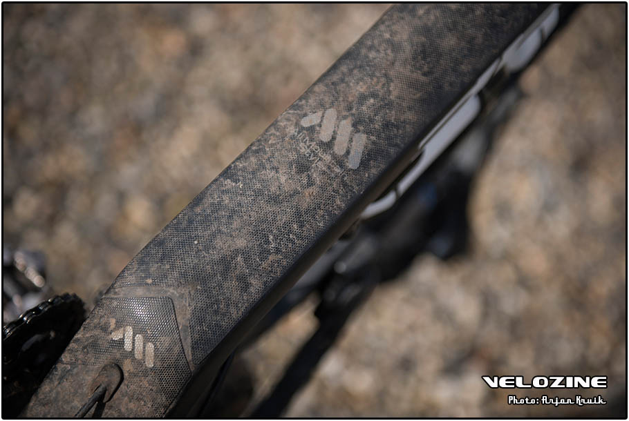 Er is volgens mij trouwens nog een reden waarom de tractie en het comfort van de AMS 100 C:68 bovengemiddeld zijn en dat is de flex in de achtertrein. Flex? Maar dat wil je toch helemaal niet? Je zou zeggen van niet. Maar een te stijve achtertrein is ook niet ideaal, zeker niet als het gaat om het absorberen van oneffenheden op het moment dat je met je bike schuin door een bocht gaat. Bij de AMS 100 C:68 ontbreekt aan de bovenkant van de staande achtervork de gebruikelijke verbinding tussen de linker en de rechter buis, waardoor het geheel enigszins kan torderen. En dat komt, zo is mijn bescheiden mening, de grip in bochten juist ten goede. Terwijl ik met mijn gewicht van 72 kilo bij het staand klimmen geen nadelen van deze constructie ondervind.