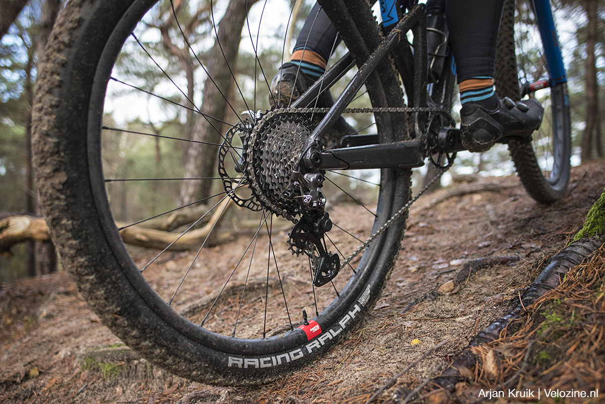 Cruciaal bij Transmission is dat het soepele schakelgedrag vooral werkt bij redelijk tot ronduit hoge spanning op de ketting. Want alleen dan blijft de ketting strak zitten daar waar het moet en verplaatst-ie zich daar waar een goede schakeling gegarandeerd kan worden. Doe je dit met minder druk op de pedalen, dan ratelt Transmission méér juist door die dik-dun-vertanding, omdat de ketting al wil verplaatsen op plekken waar dat niet optimaal is. En precies op dit punt is mijn ervaring dat Shimano’s topgroep juist meer consistent werkt. Bij zowel het op- en afschakelen onder lichte, gemiddelde en wat zwaardere belasting blijft XTR M9100 soepele schakelgedrag veel meer constant. Bij Sram Eagle 12-speed (mechanische en de eerste generatie AXS) groepen die voorafgingen aan Transmission, gaat het schakelen weliswaar behoorlijk resoluut, maar niet zo verfijnd en met meer hardere geluiden. En bij Transmission is het dus pas onder de zwaardere trapkracht dat het écht stiller en soepeler werkt.
