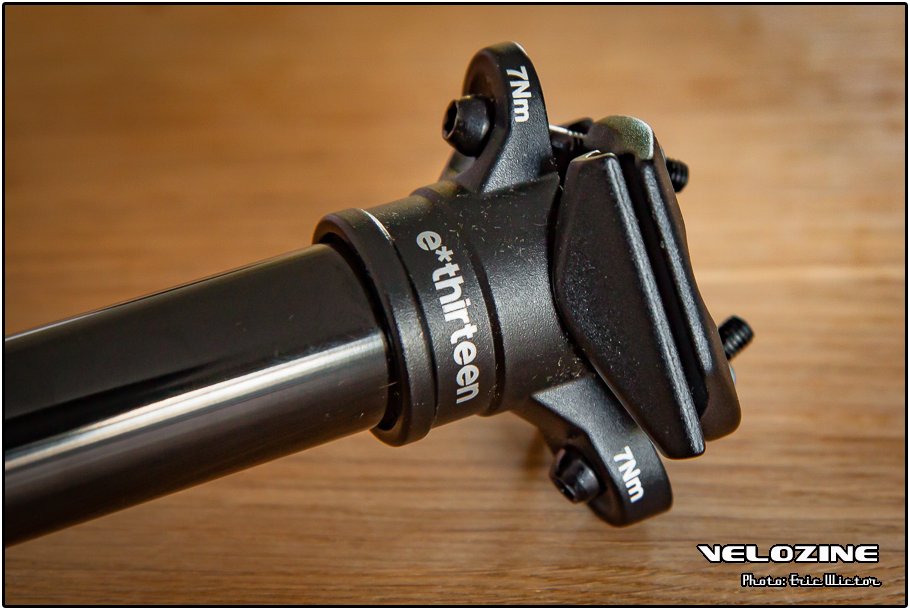 Deze gedachtengang heeft ongetwijfeld ook achter de €289,- kostende e*thirteen TRS+ zadelpen gezeten. Deze pen werkt namelijk volledig mechanisch én is thuis te onderhouden met standaard fietsgereedschap. Behoudens de originele Gravity Dropper (waarvan de website al 5 jaar statisch is) gebruiken alle andere fabrikanten een luchtveer. Soms is dit een eigen luchtkamer, vaker betreft het een goedkope losse (Wintek) cartridge. e*thirteen gebruikt echter een lichte stalen schroefveer – die kan tenminste nooit lek raken en leeglopen. Het geheel is qua gewicht concurrerend en niet per sé zwaarder dan een pen met luchtveer.