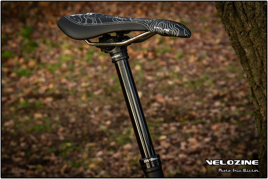Qua werking is de e*thirteen TRS+ zadelpen niet eenduidig tussen concurrenten te plaatsen. Wat betreft het indrukken is dit één van de lichtst lopende pennen op de markt, dankzij de lichte schroefveer. Zowat alle andere pennen hebben méér druk van je achterwerk nodig om in te zakken. De ontgrendeling loopt daarnaast ook praktisch moeiteloos. Dat de TRS+ volledig mechanisch werkt voel je duidelijk – het smeuïge, gedempte gevoel van bijvoorbeeld een Fox Transfer is er zeker niet. De mogelijkheid om je pen naar een willekeurig punt te laten zakken, zoals wederom bij een Transfer of een Rock Shox Reverb, ontbreekt ook. Als de paden eng steil worden is dit totaal geen punt, ben je nog (veel) bergaf aan het bijtrappen dan is het met de TRS+ soms wat zoeken.