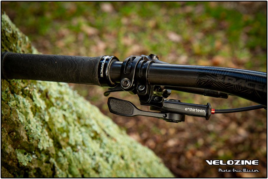 Een ander punt waar e*thirteen veel ontwerptijd in lijkt te hebben gestoken is de remote. Zoals al eerder genoemd in de Wolftooth ReMote review is de TRS hendel één van de beste op de markt. De ergonomie is, met de grote duimhendel voorzien van griptape, absoluut top. De instelbaarheid is bovendien gelijk aan die van een SRAM shifter. Daarnaast is het geheel voldoende afgedicht voor slechte omstandigheden. Tot slot wordt de kabel nauwelijks gebogen bij het bedienen. Dit scheelt uiteindelijk onverwachte kabelbreuk, zoals op andere remotes wel eens wil gebeuren. Gek genoeg lijkt de meegeleverde(!) klemband precies op ééntje van SRAM maar zijn ze niet uitwisselbaar. Het enige mogelijke minpunt van de hele constructie is dat je voor montage van de kabel (je schroeft deze vast op de hendel) 3 verschillende inbus- en Torxsleutels nodig hebt. Handig is anders.